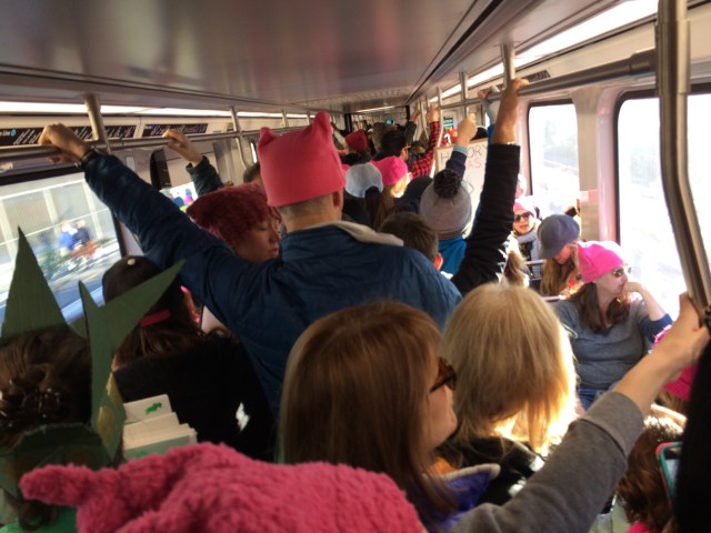 Starting from the poster making with friends, explaining to Plumster what and why we are marching, taking the train to downtown LA in jam-packed cars, to finally stepping out onto sun-kissed Pershing Square, and be surrounded by the phenomenal crowd; oh the chants, the songs, and all the creative, positive energy. We absorbed it all like hungry malnourished plants in a drought. On the train ride home, a mother mused out loud to no one in particular, “I wonder if what we did today made a difference.”